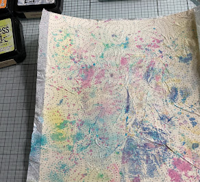 Next I have adhered a piece of my inky mop up kitchen roll to some thin card, I use a basic glue stick to do this.